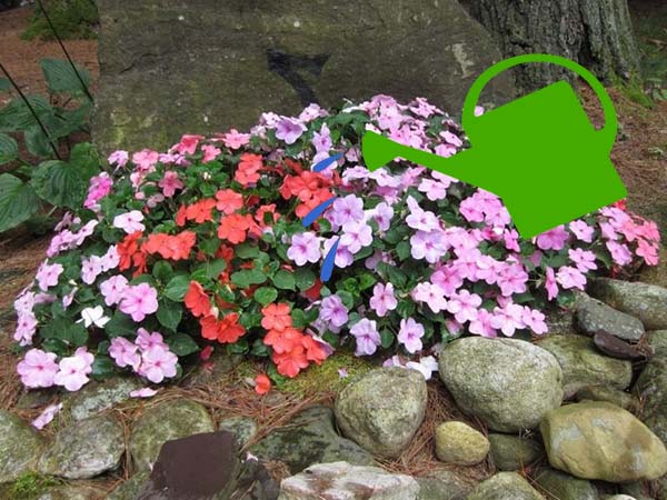 Maintenant, il est nécessaire de retirer les plants de baumier des récipients avec la motte de terre et de les placer soigneusement dans le trou, saupoudrer de terre et presser un peu. Il ne sera pas superflu de pailler le palier sciure (ou tout autre paillis) afin que le sol autour ne se dessèche pas et n'ait pas à être arrosé à l'infini. De plus, c'est un avantage supplémentaire pour la plante, car le collet est paillé et ainsi les racines de la plante ne seront pas lavées lors de l'arrosage.