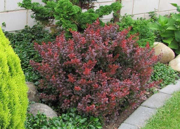 - Épine-vinette Thunberg décorative (les fruits sont petits et non comestibles, peuvent atteindre 1,5 mètre).