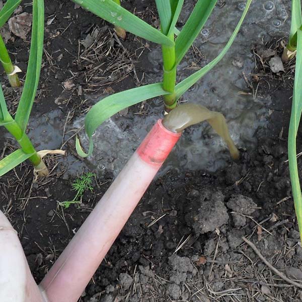 Abondant et fréquent arrosage l'ail de printemps n'est nécessaire qu'au début de sa formation, de sorte qu'il ait, pour ainsi dire, un bon feuillage vert. En d'autres termes, en mai-juin, l'arrosage des parterres d'ail devrait être fréquent. Lorsque la plante commence à former une tête, cela se produit généralement lors de la formation de 5 à 6 feuilles, l'arrosage doit être réduit, plus proche du mois d'août, et complètement arrêté.