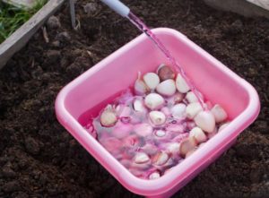 - Après la procédure de désinfection, vous pouvez en outre tremper les têtes d'ail dans l'un des stimulants de croissance (Epin, Zirkone, Rostock).