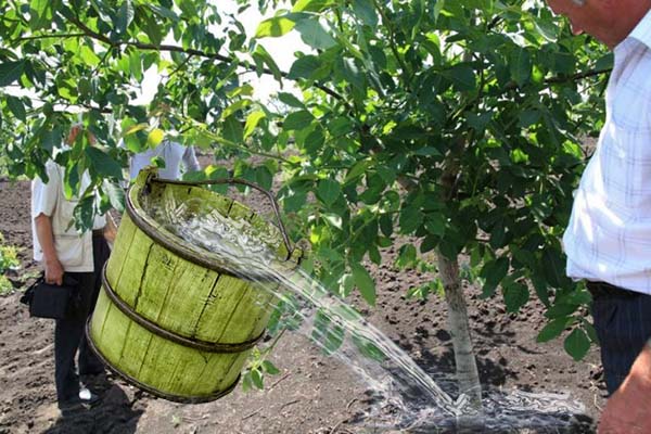 C'est l'arrosage correct de la noix qui est à la base du soin des arbres.Ainsi, pendant la saison estivale (surtout si l'été est sec et chaud, il n'y a pas de pluie), une jeune noix n'aura besoin que d'environ 10 à 14 arrosages (presque toutes les semaines), et environ 2-3 seaux d'eau (25 à 35 litres) doivent être versés à la fois ... À l'avenir, un arbre déjà mature devrait être arrosé plus abondamment (60 à 80 litres), mais pas si souvent (2 à 3 fois par mois suffisent).