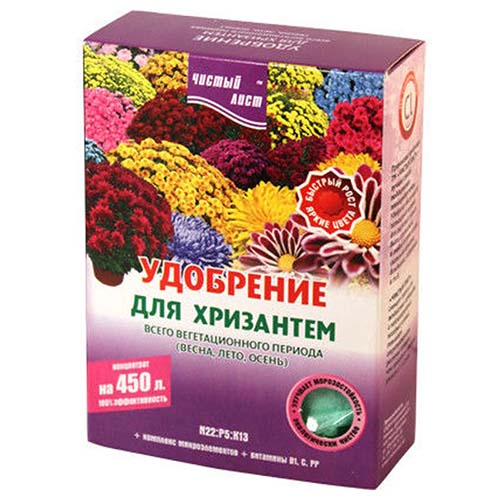 Il existe des engrais complexes spéciaux pour les chrysanthèmes pour toute la saison de croissance.