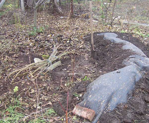 Il n'est pas nécessaire de planter directement, vous pouvez planter un semis et en oblique (à un angle de 45 degrés, comme un cassis); Ainsi, à l'avenir, vous simplifierez la tâche de plier et de recouvrir les branches pour l'hiver.