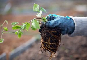 - Placez le plant dans le trou, creusez avec de la terre et compactez avec votre main.