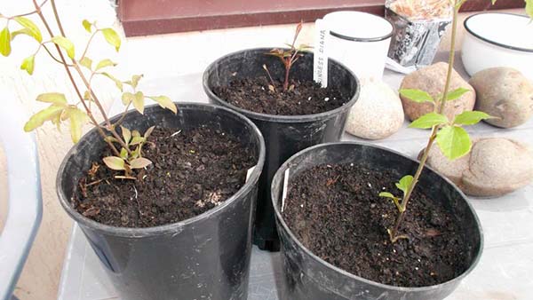 La pousse enracinée doit être immédiatement retirée du sac et placée dans une bouteille en plastique de deux litres avec un goulot coupé (ou pot) et des trous de drainage. Ensuite, creusez-le dans le sol pendant un an, où il poussera tout ce temps, puis transplantez-le dans un endroit permanent dans le jardin.
