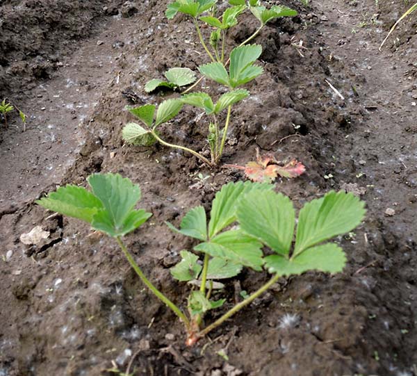 Selon la méthode choisie et le schéma de plantation, les fraises sont plantées à une distance de 15 à 25 cm.L'étape la plus courte pour planter les plants est utilisée dans un motif de tapis, la plus longue consécutive (en rangées).