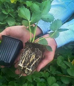 - Plants de fraises système racine ouvert (OCS) trempé dans une purée d'argile (ou encore mieux dans une solution d'un des stimulants de croissance), puis coupez légèrement les racines noircies et trop longues (mais pas plus de 1 cm) afin qu'elles ne se plient pas dans le trou lors de la plantation.