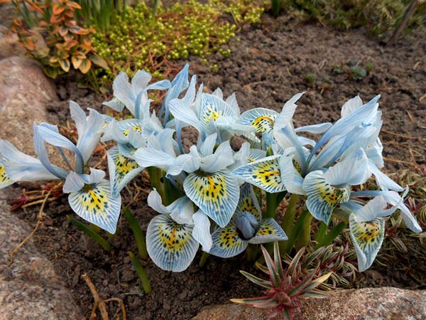 Pour planter des iris bulbeux de printemps, choisissez des endroits près de chez vous ou près des allées de jardin afin qu'ils rencontrent souvent vos yeux pendant leur courte floraison. Ajustement parfait jardin de roches ou jardin rocheux... Il est beau de les planter à côté d'autres bulbeux, fleurissant au début du printemps, par exemple, avec le même crocus, jonquilles, tulipes.
