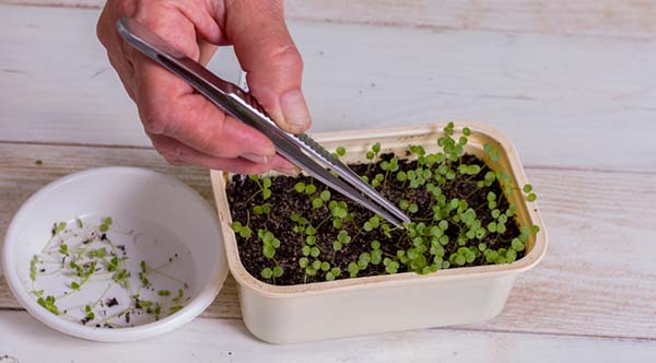 - Retirez les plants avec une cuillère (ou une pince à épiler une à la fois) et séparez-les les uns des autres.