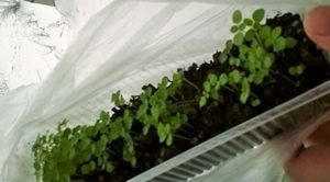 - Il reste maintenant à recouvrir les cultures de papier d'aluminium ou de verre et de les placer dans un endroit lumineux et chaud, où la température de l'air est de + 22-25 degrés.