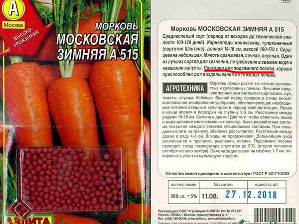 En conséquence, si vous décidez de semer des carottes à l'automne, assurez-vous d'étudier attentivement l'emballage lors de l'achat de graines. Dans les instructions de culture (technologie agricole), il doit être écrit que cette variété convient aux semis avant l'hiver.