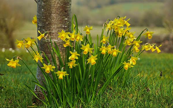 Les jonquilles se faneront avant même que les mêmes pommiers ou poiriers ne soient recouverts d'un feuillage dense, de sorte que l'ombre de la couronne de l'arbre n'en ait pas peur.