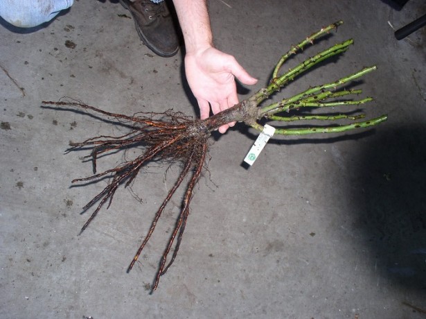 Bon plant de rose à racines ouvertes devrait ressembler à ceci: