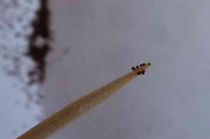 Une autre façon complexe: humidifier la pointe avec de l'eau cure-dents, puis trempez-les dans les graines et tous les 2 cm, en tournant légèrement le cure-dent, touchez-les au sol.