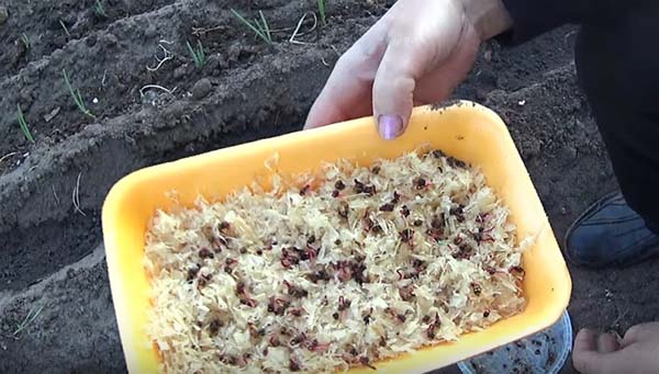 - Ensuite, recouvrez les rainures de terre et saupoudrez à nouveau de cendres.