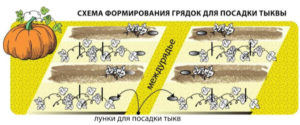 Les plants de citrouille sont plantés selon un certain schéma, en règle générale, il est indiqué sur l'emballage de graines (le plus souvent à une distance de 80 à 150 cm les uns des autres).