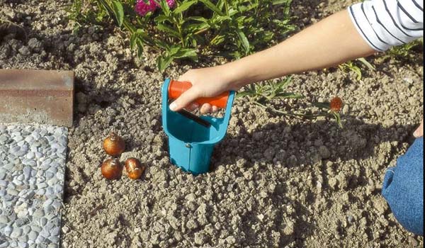Conseil! Il existe un dispositif spécial pour planter des bulbes, ce qui est très pratique pour faire des trous de plantation de la profondeur requise en fonction de la taille du bulbe.