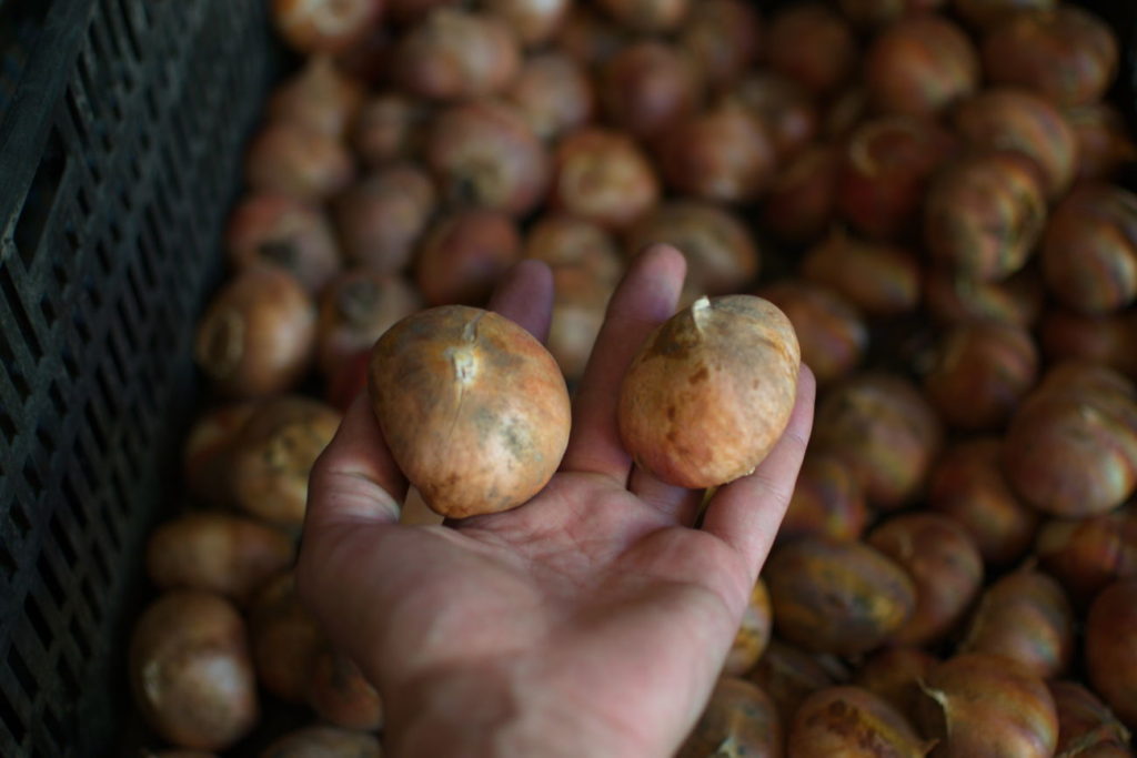 Il est également impératif que bourgeon de tige seulement en train de sortir, mais pas encore en croissance. Une attention particulière doit être portée à le fond de l'oignon, qui dans un spécimen de qualité doit être dense et sans racines (molles et avec des racines en croissance - pas votre choix). L'ampoule doit être sèche, lourde et ferme au toucher.