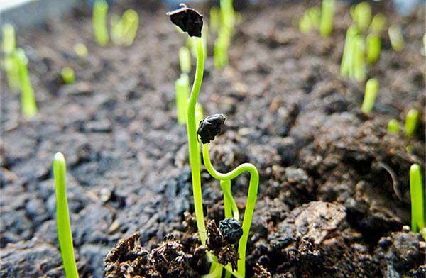 Pour une croissance normale, les semis d'oignon nécessitent 12 heures de jour... Par conséquent, avec un semis précoce, vous devez immédiatement réfléchir à la façon dont vous allez compléter le poireau: ce seront des phytolampes plus chers ou des équivalents LED économiques.