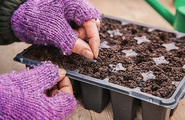 - Semez les graines à une distance de 4 à 5 centimètres les unes des autres et recouvrez légèrement de terre.