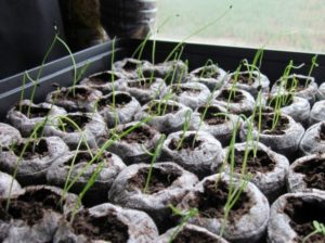 Au fait! Planter et cultiver des poireaux dans des comprimés de tourbe sans cueillette serait une excellente option.