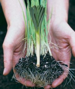 Au fait! Pour améliorer le taux de survie des plantules, il est recommandé de tremper les racines de poireau dans une purée d'argile avec une molène (1 à 1).