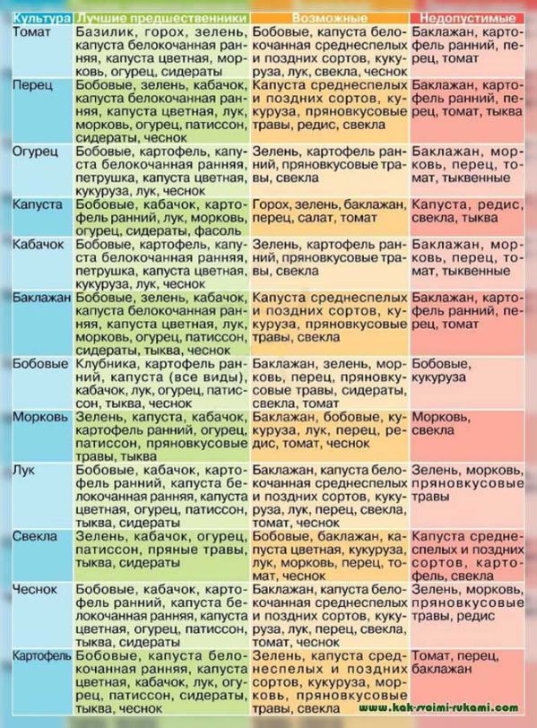 Ainsi, lorsque vous choisissez un lit avec les bons prédécesseurs, vous pouvez économiser vos ressources et votre temps, car vous n'avez pas à dépenser d'énergie pour nourrir et fertiliser, ainsi que pour traiter les maladies et les ravageurs.