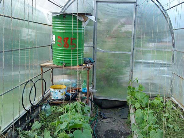 Idée! Si vous voulez que l'eau du baril soit toujours chaude, alors le baril peut être placé dans la serre (et cela gardera également la serre chaude la nuit). S'il n'y a pas de place dans la serre ou si le baril est à l'extérieur, vous pouvez faire un "thermos" en plaçant le baril dans une boîte en polycarbonate. L'eau dans un tel "thermos" refroidira longtemps et le matin, elle sera encore très chaude.