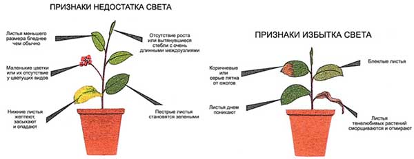 Important! Dans les deux cas (avec un manque et un excès de lumière), les feuilles des plants plutôt devenir blanc et sec que jaune.