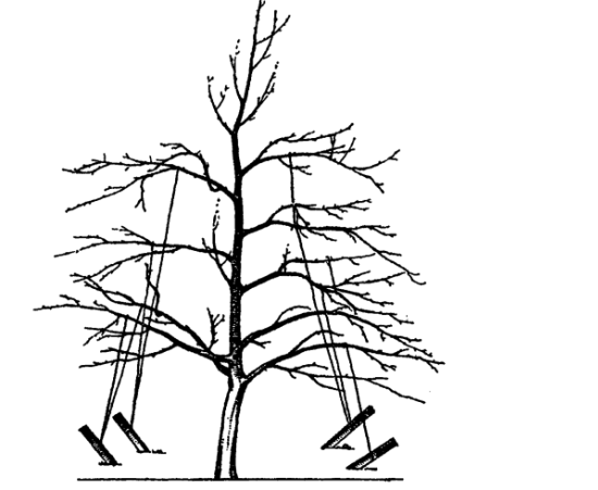 Une autre raison du manque de fructification est la croissance verticale des branches de pommier. Le fait est que les fleurs et les fruits ne peuvent se former que sur une croissance horizontale. Dans ce cas, vous devez donner aux branches verticales une position horizontale à l'aide d'une charge ou d'un hauban, en d'autres termes, réduire l'angle d'inclinaison des branches. Cependant, la fructification ne devrait être attendue que 2-3 ans après la flexion.