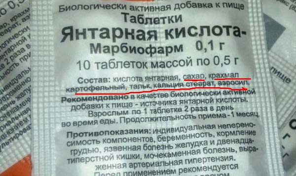 Remarque! Un comprimé pesant 0,5 gramme d'ingrédient actif (acide succinique) ne contient que 0,1 gramme.