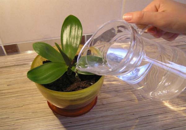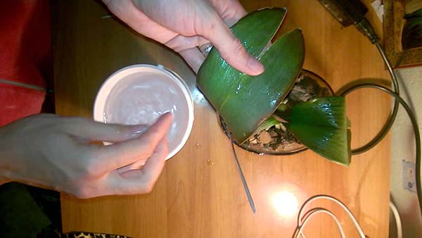 Si trop de solution est entrée dans la casserole, vous devez attendre qu'elle fusionne dans la casserole, puis la verser hors de là. En aucun cas, les racines délicates de l'orchidée ne doivent tremper, car cela peut entraîner leur décomposition.