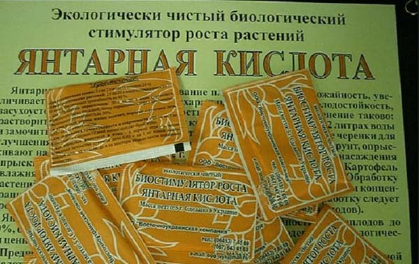 Important! L'acide succinique est un biostimulant (complément alimentaire) qui n'est utilisé que lorsqu'il est nécessaire de restaurer ou d'aider d'urgence la plante. En d'autres termes, vous avez besoin d'une bonne raison de l'utiliser.
