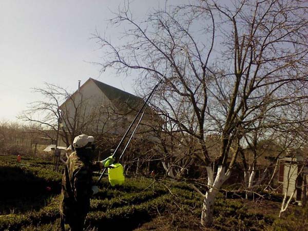 Il est possible de pulvériser les arbres avec cette solution au printemps, lorsqu'ils sont encoreau repos (les reins ne sont pas encore ouverts) ou le long d'un cône vert (l'état où les bourgeons viennent juste d'éclater, mais que les feuilles n'ont pas encore commencé à se déplier).