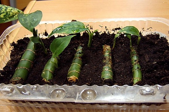 Pour une reproduction réussie de dieffenbachia par boutures, son enracinement dans le sol est effectué selon l'algorithme suivant: