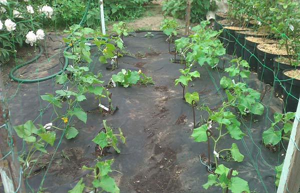 La plantation de concombres sous un film noir abaisse la température du sol de 2 à 4 degrés, de sorte que dans la chaleur estivale, ces concombres se sentent mieux.