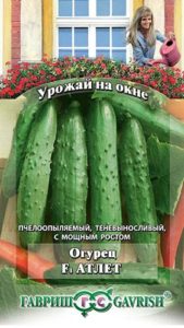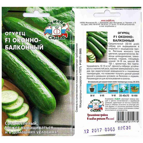 Variétés et hybrides de concombres, adaptés à la culture sur un rebord de fenêtre, un balcon et une loggia, sur lesquels dit dans la description sur l'emballage (alphabétiquement):
