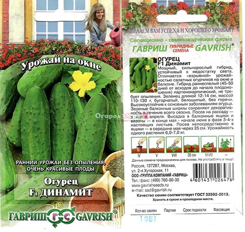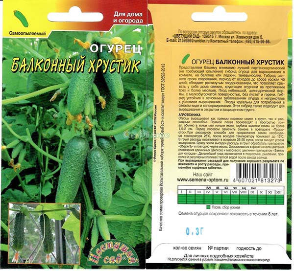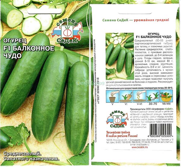 Quant au choix d'une variété particulière de concombres, il peut y avoir sur un sac de graines la note «Récolte sur la fenêtre», «Pour la culture à la maison», «Sur le rebord de la fenêtre, balcon, loggia». Il pourrait être type "balcon" soit par lui-même nom directement pour quelque chose que la variété convient aux conditions intérieures ou de balcon. En règle générale, à ce sujet dit dans les instructions au dos de l'emballage.