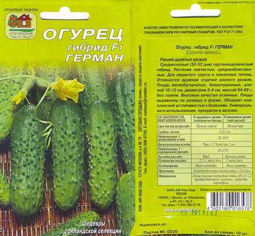 - German F1 (de taille moyenne, sans amertume, fruits jusqu'à 10-11 cm);