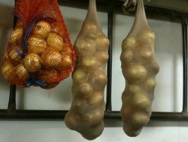 Important! Pas de sacs en plastique! En eux, l'oignon pourrira en quelques jours.