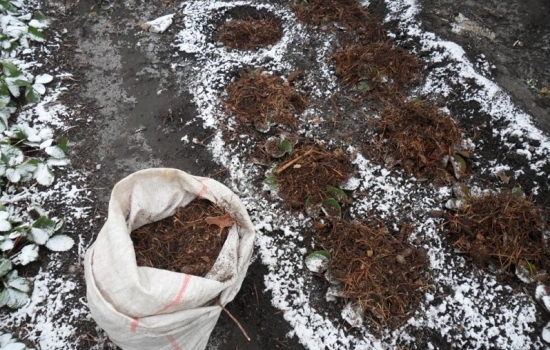 Comme paillis, vous pouvez utiliser de la litière de conifères, des feuilles d'arbres et d'arbustes stériles, des sommets de fleurs secs, sciure, foin ou boutures d'herbe.