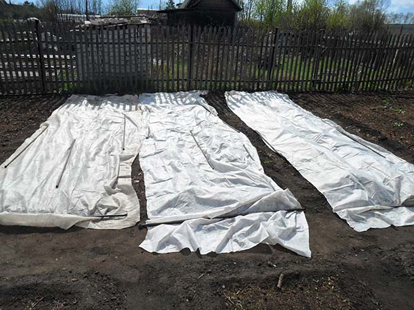 Mais avant de recouvrir les parterres de fraises, il est conseillé d'installer des arcs, puis de les étirer avec le matériau de revêtement, bien que vous puissiez le recouvrir superficiellement.