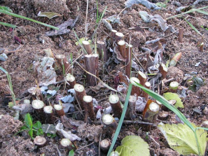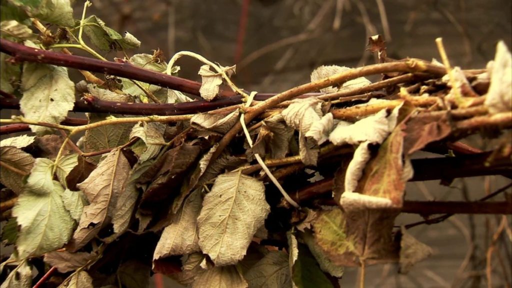Le sol du site et les branches courbées sont recouverts de paille sèche ou de feuillage. Au lieu d'un paillis organique, les tiges peuvent être enveloppées de polyéthylène, spunbond.