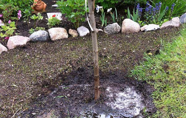- Une application excessive d'engrais minéraux entraîne une augmentation du niveau de sels dans le sol, qui au fil du temps commence à supprimer le système racinaire de l'arbre.