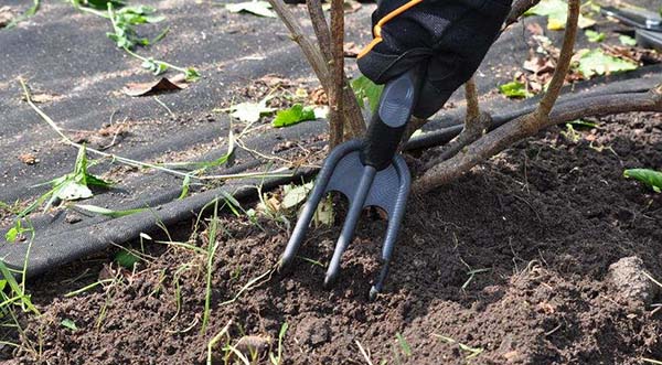 Ensuite, vous pouvez procéder à ameublir le sol... Le but de cet événement est d'améliorer l'accès de l'air aux racines des plantes, ainsi que l'humidité et la nutrition.De plus, cela doit être fait avec une houe spéciale (5-6 cm), en aucun cas avec une pelle, car les groseilles ont un système racinaire assez superficiel.