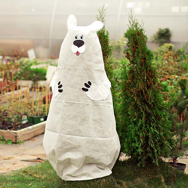 - Pour protéger le thuya du soleil peut être utilisé gaze, papier kraft, tissu en coton blanc (drap, housse de couette), sacs en polypropylène, toile de jute, maille polymère.