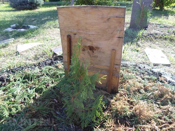 Conseil! Le thuya très petit et sous-dimensionné peut être simplement recouvert de caisses en bois.