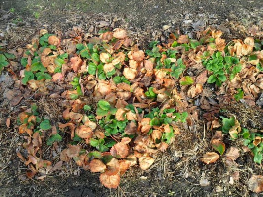 Au fait! En ce qui concerne les fraises déjà plantées dans un matériau de couverture (spunbond), au printemps, elles n'ont pas besoin d'être enlevées, mais seules les feuilles sèches et endommagées doivent être coupées.