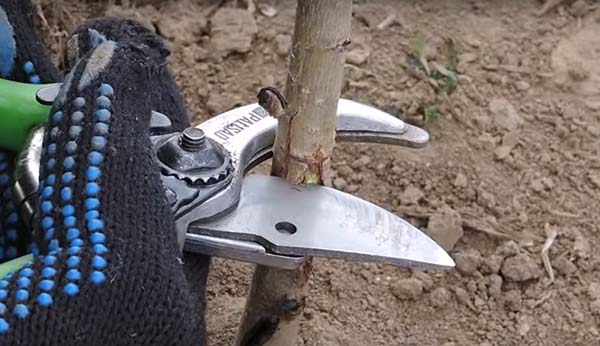 - Faites une coupe latérale sur le porte-greffe. En même temps, il doit regarder dans la direction dont nous avons besoin.