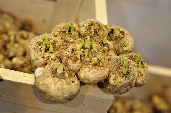 Avis: «Je stocke les tubercules dans une boîte, recouverte de sciure de bois, dans une cave. Les tubercules sont bien conservés, ne se dessèchent pas et ne pourrissent pas. "«Je le déterre, le mets dans un grand seau de terre et dans la cave. Parfois, j'arrose légèrement le sol pour qu'il ne se dessèche pas. Et il en est ainsi depuis de nombreuses années. Bien rangé. "